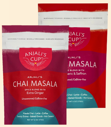 Anjali’s Cup’s authentic, Ayurveda-inspired turmeric and chai blends are made with organically grown spices and tea, making them easy to incorporate into daily consumption.